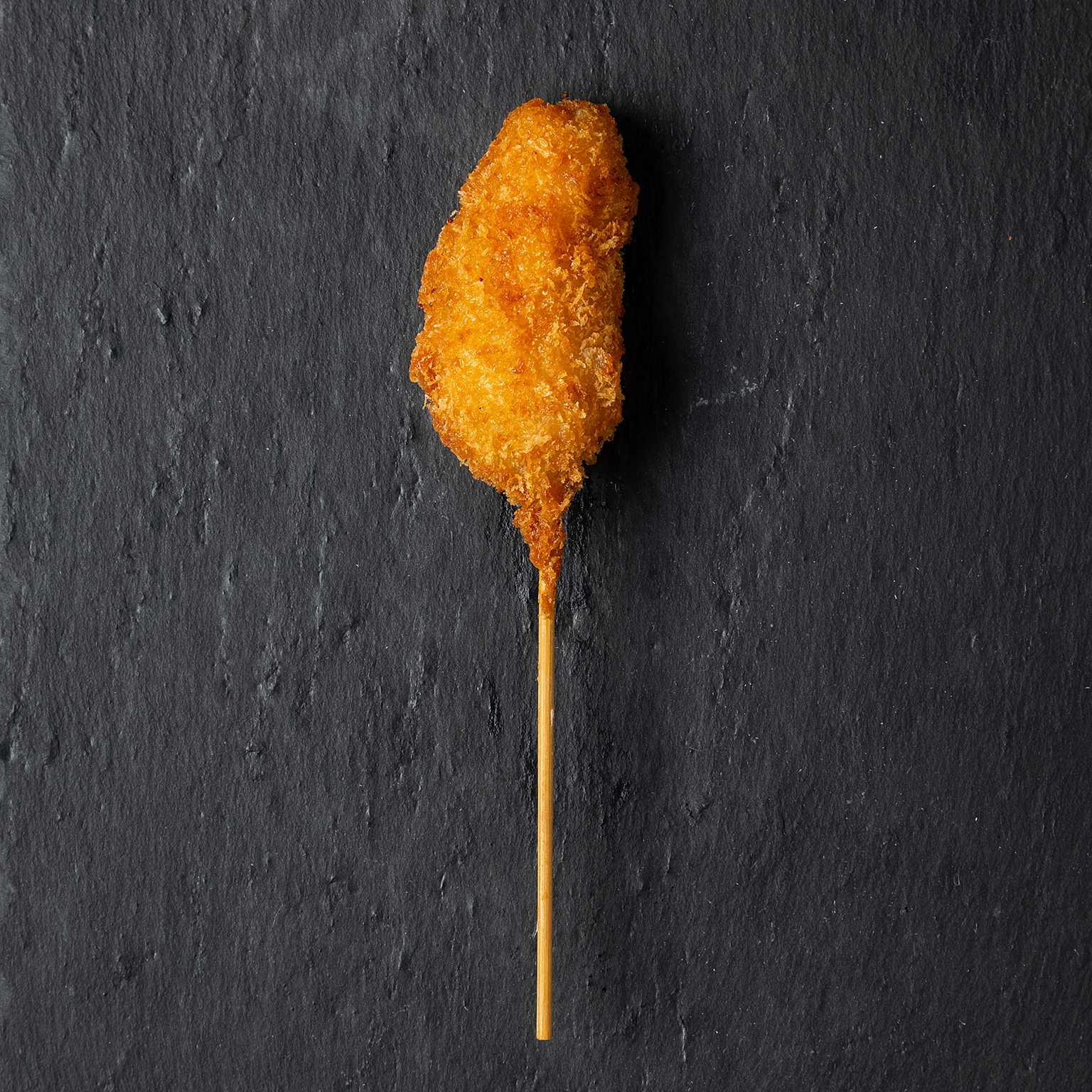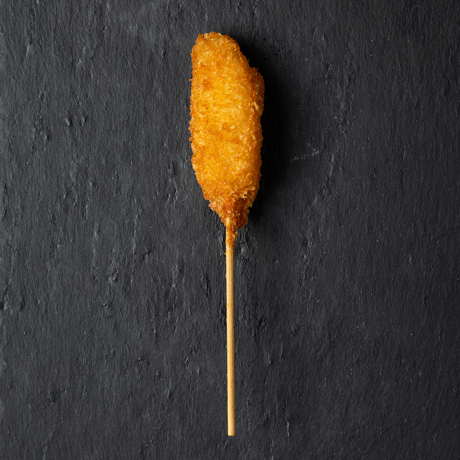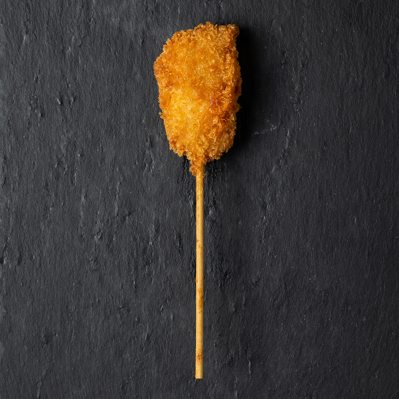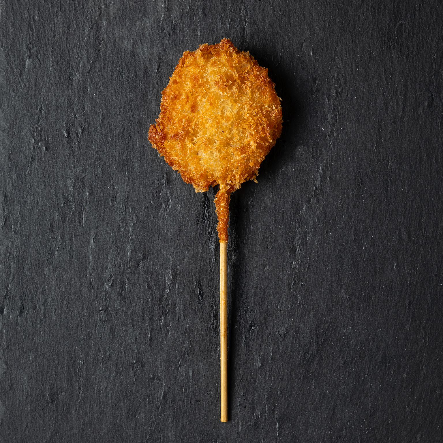 甘みたっぷりのかぼちゃをサクサクの衣で包んだ、ホクホク感が楽しめる串揚げ。外はカリッと香ばしく、中はクリーミーでほっこりとした味わいが広がります。