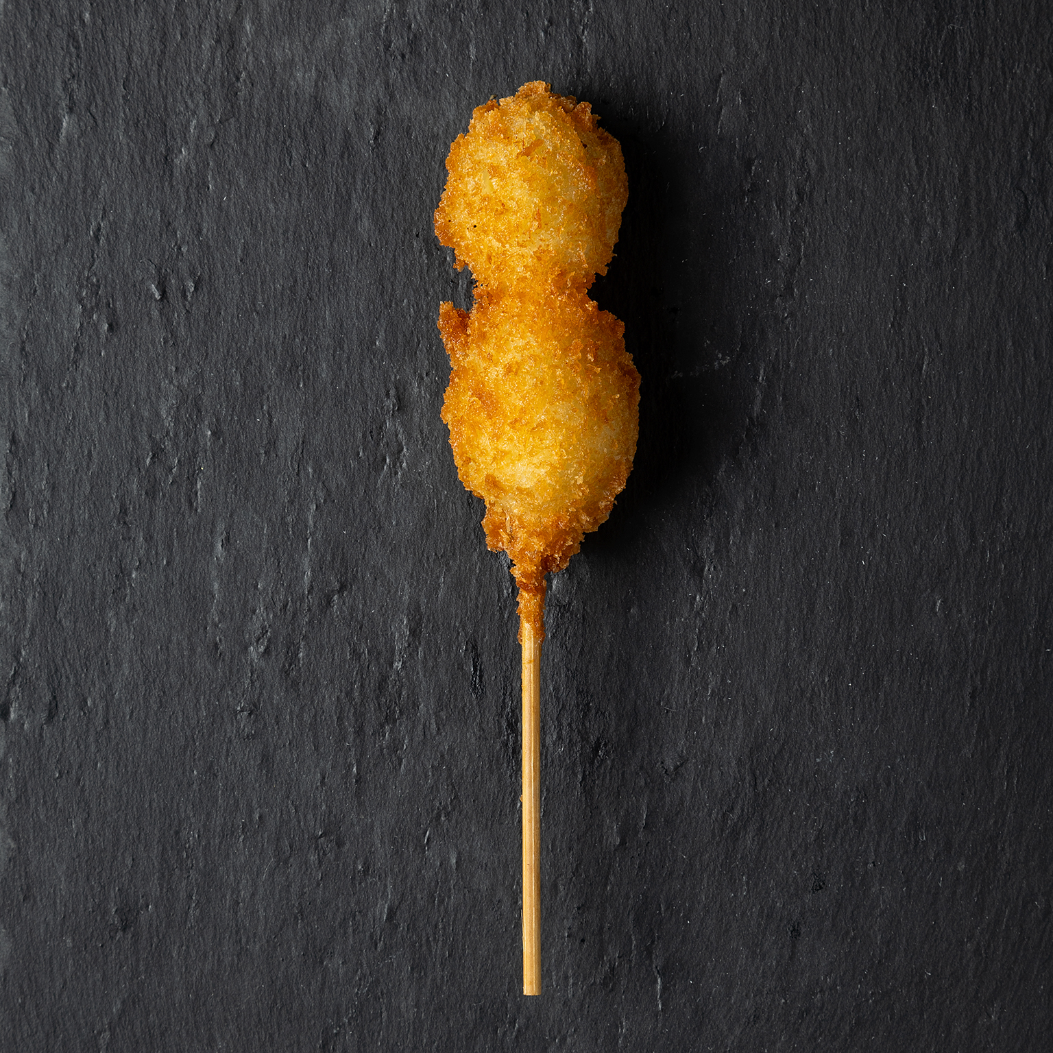 ぷりぷりのうずら卵をカリッと揚げた、食べ応え満点の串揚げ。外はサクサク、中はとろりとした黄身の濃厚な味わいが口の中に広がります。