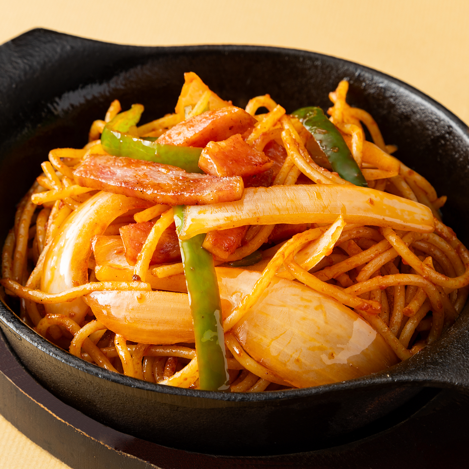 懐かしの味、昔ながらのナポリタン。モチモチのスパゲッティに、ケチャップベースのソースがしっかり絡み、甘酸っぱい風味が口いっぱいに広がります。