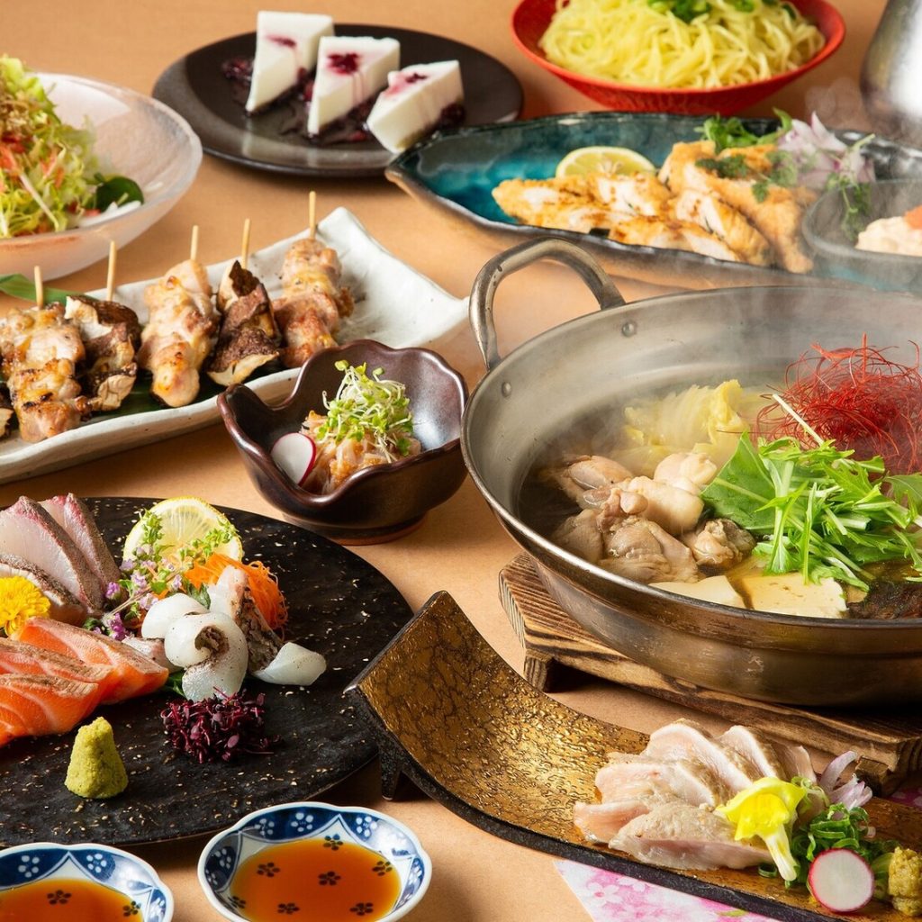 お手軽プランから大人気のものまで。季節の宴会や友人同士の飲み会、同窓会など各種宴会に最適のコースが多彩にございます。市場から直送の鮮魚や博多の水炊き唐揚げなどこだわりの銘柄鶏を使用した鶏料理が豪華ラインナップ。鶏料理×海鮮料理の贅沢な組み合わせでご提供しております。ご予約お待ちしております。