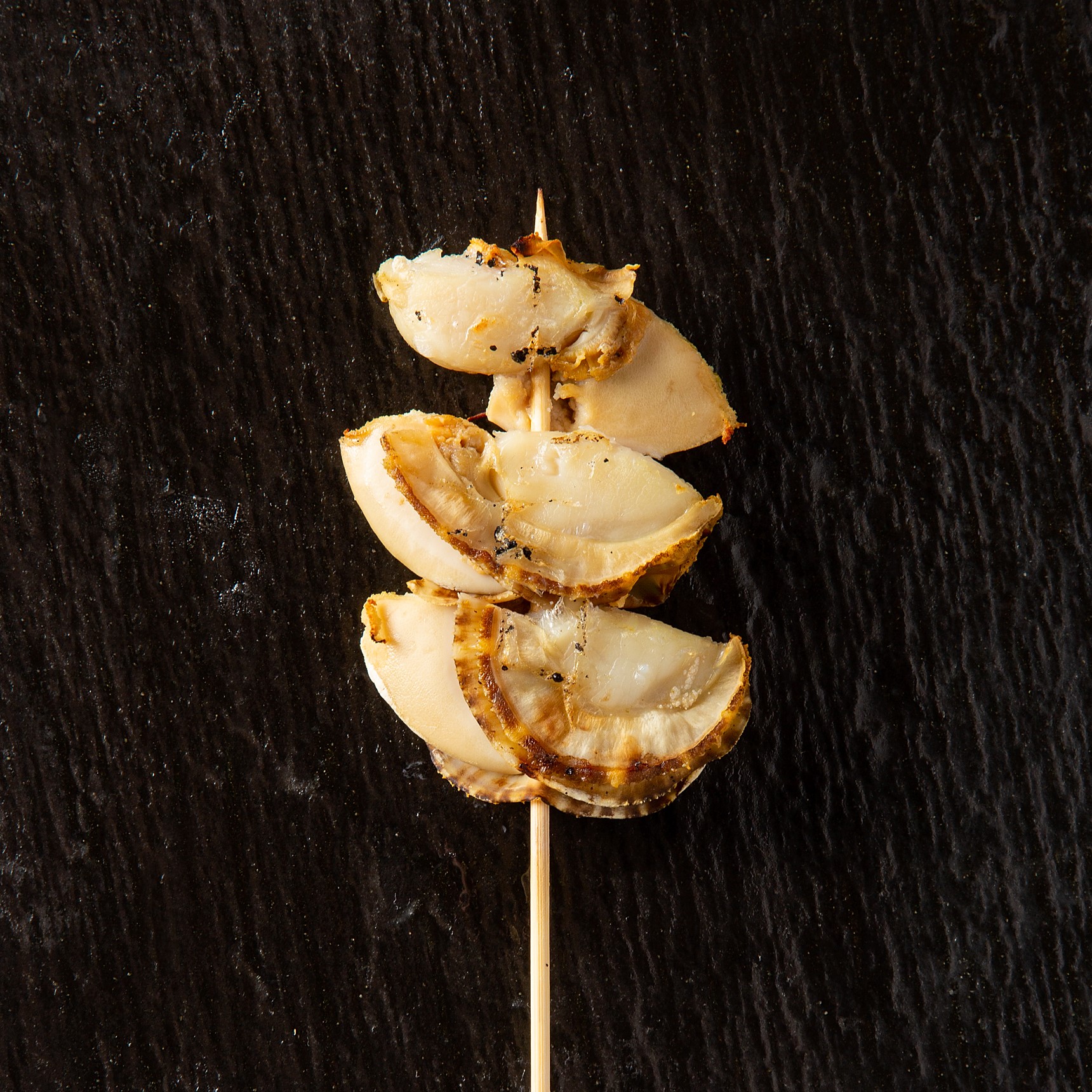 ホタテの甘みとジューシーな旨味が口の中に広がり、香ばしく焼き上げた香りがさらに食欲をそそります。シンプルながらも素材の味を存分に楽しめる逸品です。